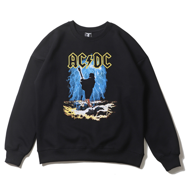 Acdc Sweatshirt Rock Letter Long Sleeve Pullover Loose Casual Couple Tops