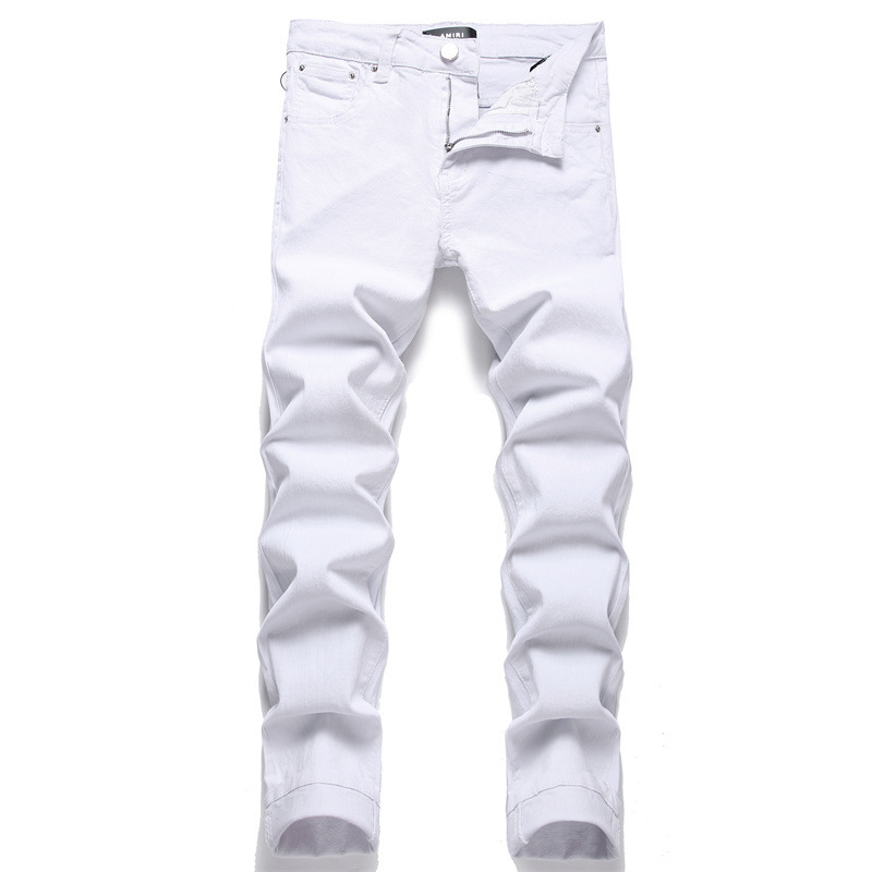 AM Jeans Pure White Simple Trend Elastic Slim Fit Pants Versatile Men's Pants