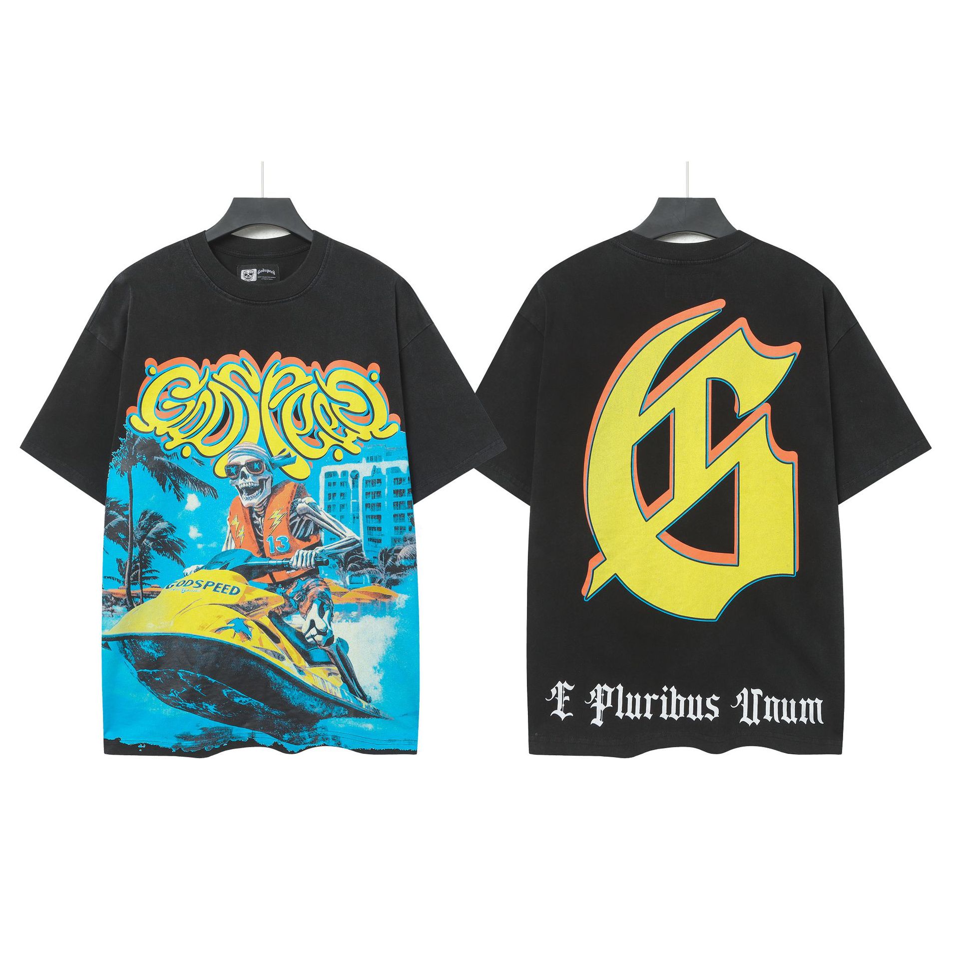 GD washed retro style short-sleeved distressed T-shirt unisex
