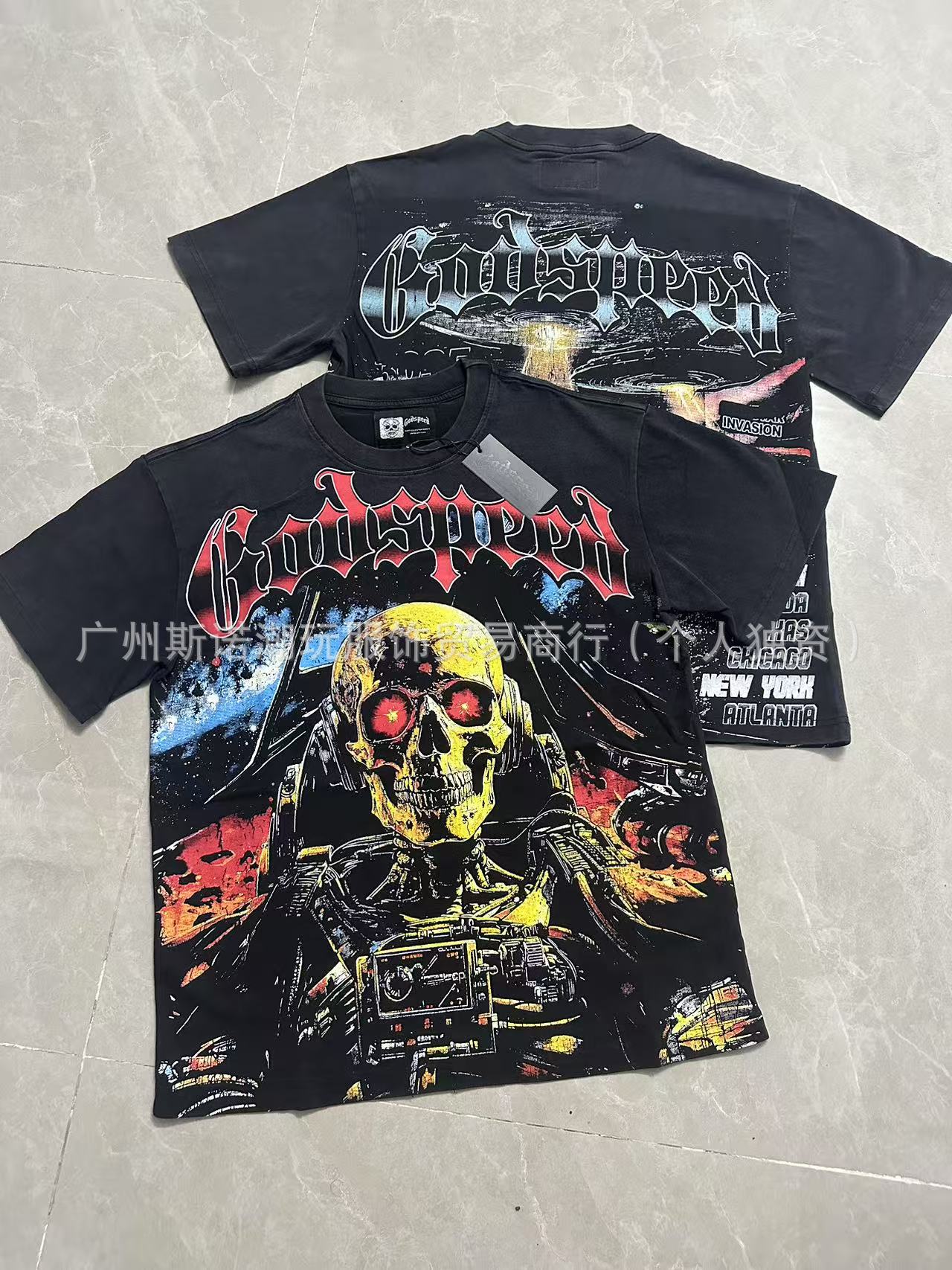 GD unisex loose pullover short-sleeved T-shirt youth casual retro print