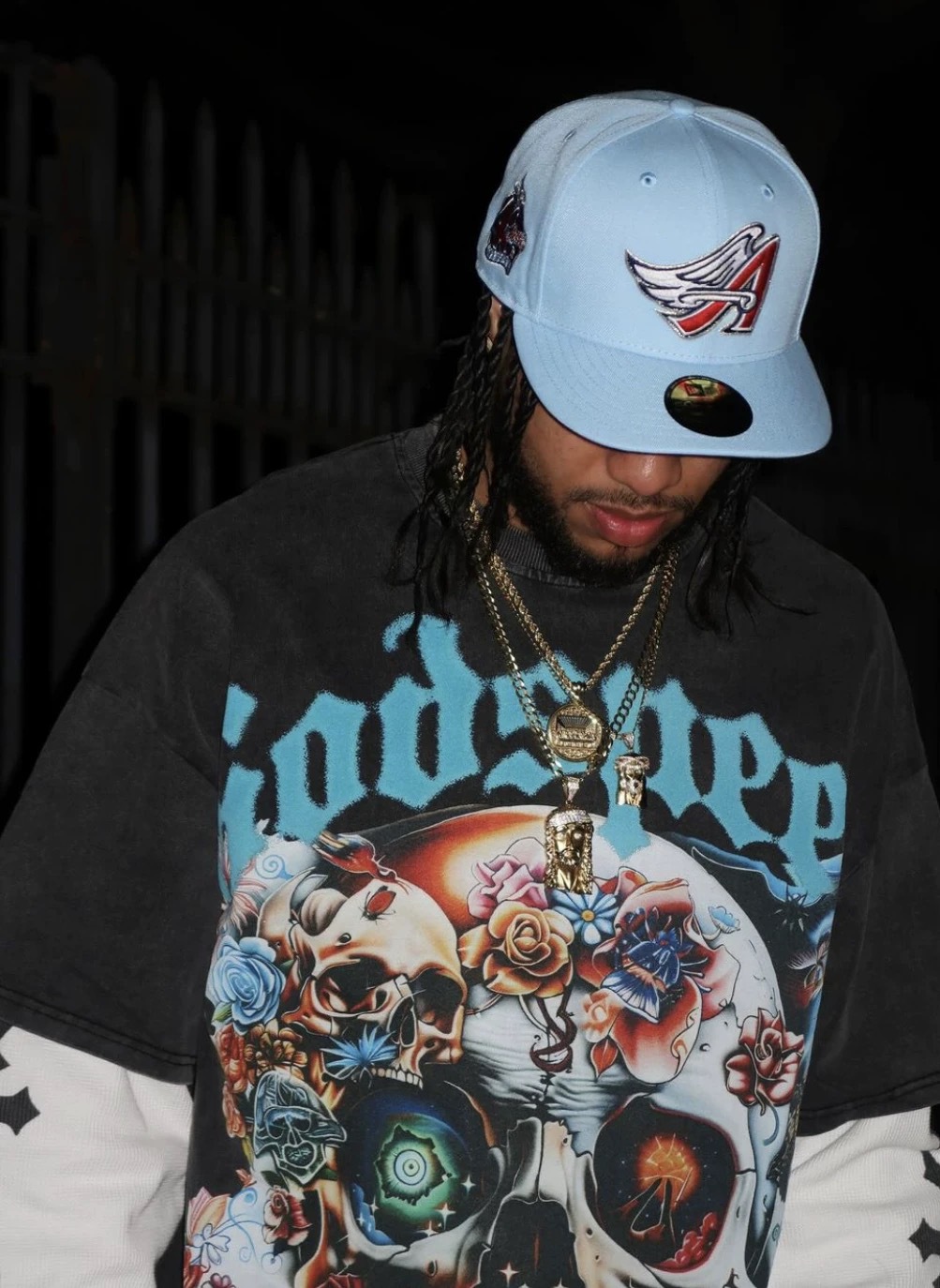 GOD SPEED Short-sleeved Skull Letter Print Washed and Distressed Casual Men and Women Loose T-shirt