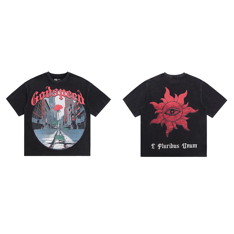 GOD SPEED T-shirt Washed and Old Printed Letters Skull Men and Women Loose Short Sleeves