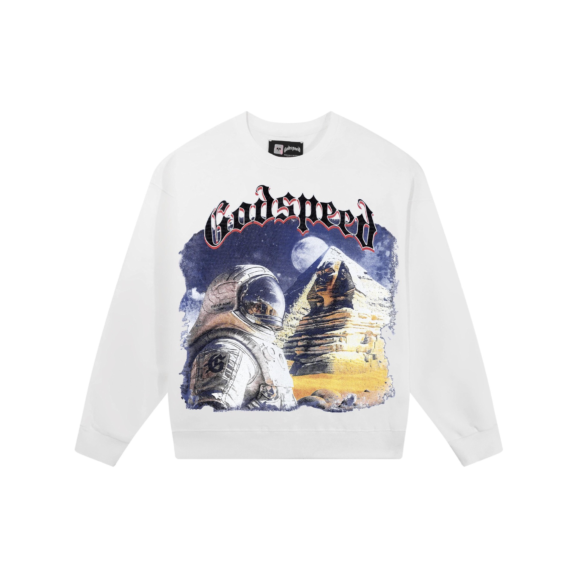 Godspeed Sweatshirt Pullover White Pattern Print Unisex Terry All-match Loose Top