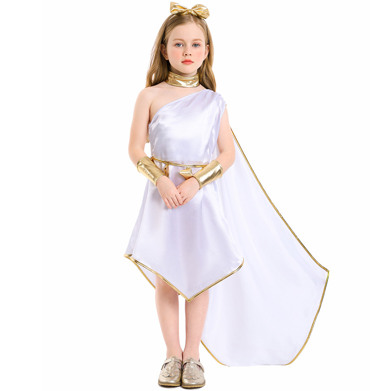 Greek Mythology Goddess Cosplay Costume White Oblique Shoulder Skirt Halloween Stage Costume