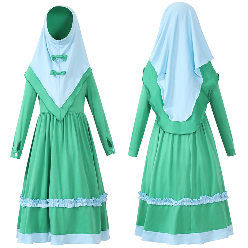 Halloween Girls Robe Headscarf Set Long Sleeve Dress Middle Eastern Ethnic Costume