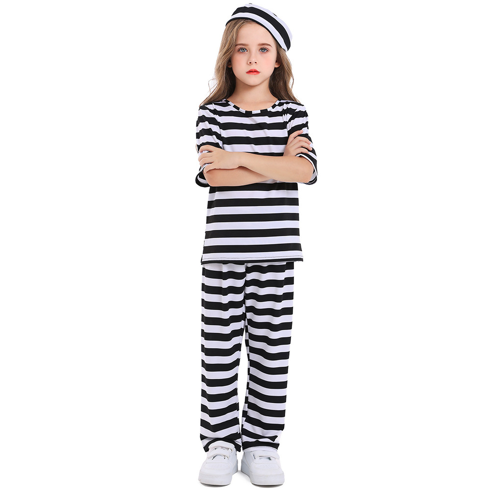 Halloween Prisoner Role Playing Children Boy Black and White Striped Prisoner Suit
