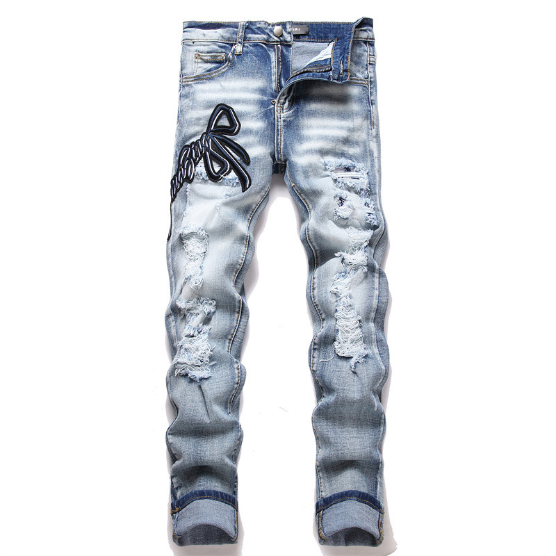 AM Jeans Men's Blue Slim Fit Trendy Elastic Slim Fit Fashionable Men's Pants