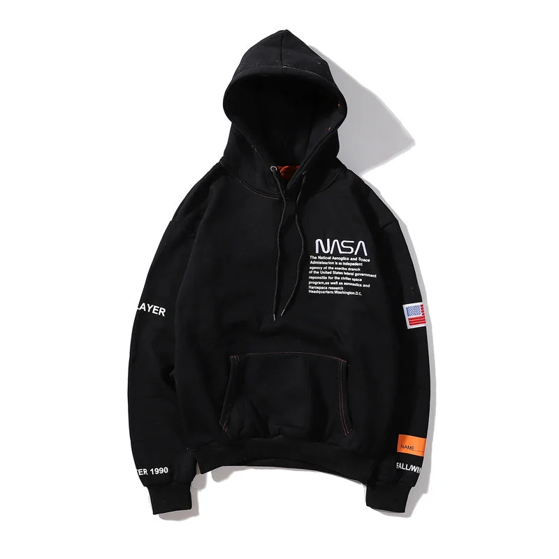 Men's Hooded Pullover Sweatshirt NASA Embroidery Letter Hoodie
