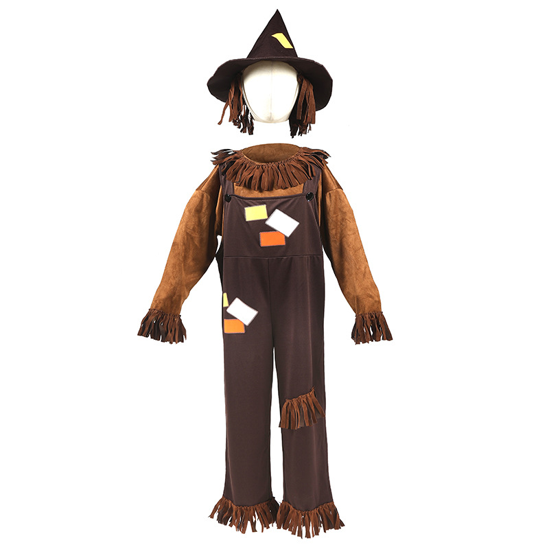 Overalls Scarecrow Children Halloween Costume Brown Holiday Party Stage Performance Clothes Boys