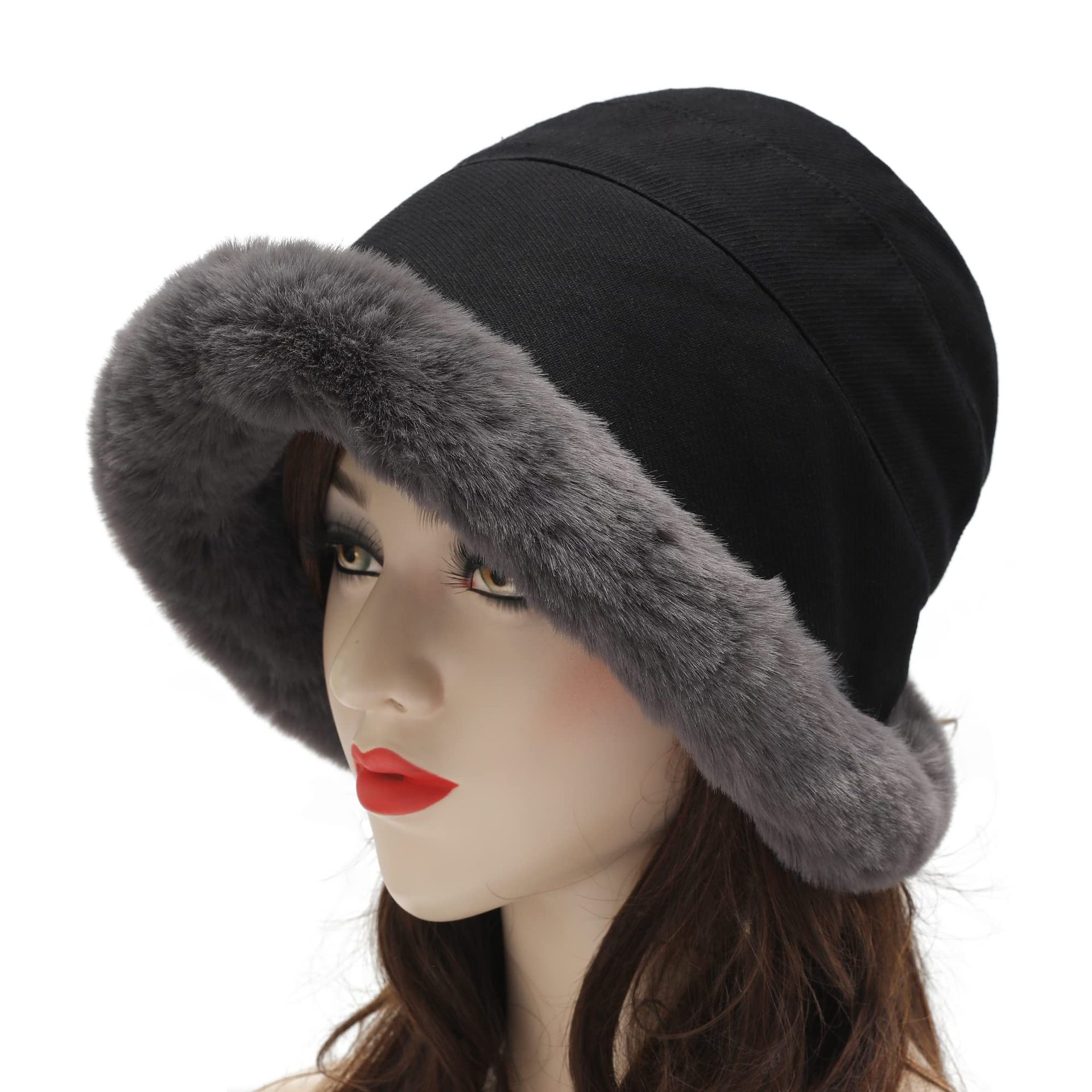 Plush Bucket Hat Women's Winter Curled Edge Faux Fur Hat Skiing Outdoor Walking Fashion Warm Hat