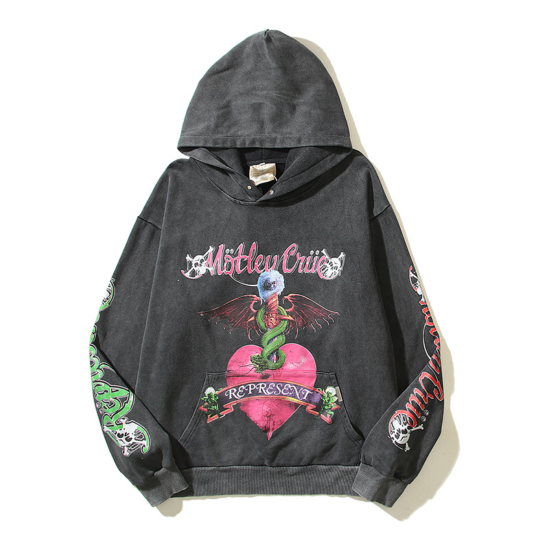 Rep Motley Crue Hoodie Band Monster Skull Printed Water Washed Vintage Graffiti Hoodie