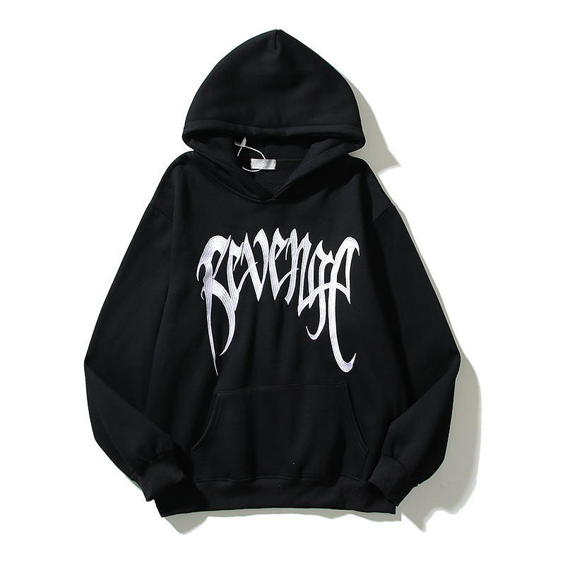 Revenge Sweatshirt Black and Gold Embroidered Letter Hoodie Unisex Couple Hip Hop Hooded Sweatshirt