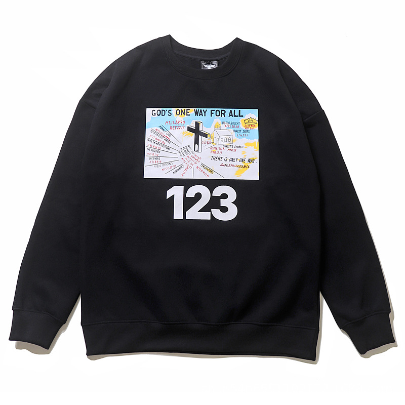 RRR Sweatshirt Loose Round Neck Cross Plus Velvet Casual Letter 123 Jacket Couple Shirt