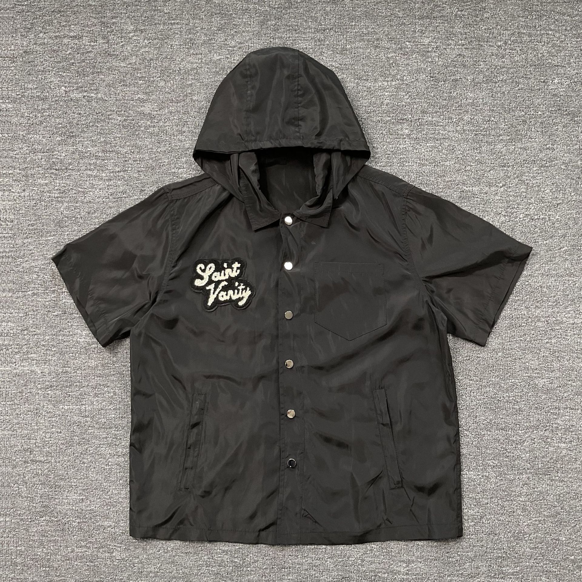 Saint hooded short-sleeved shorts suit letter towel embroidered shirt men and women casual