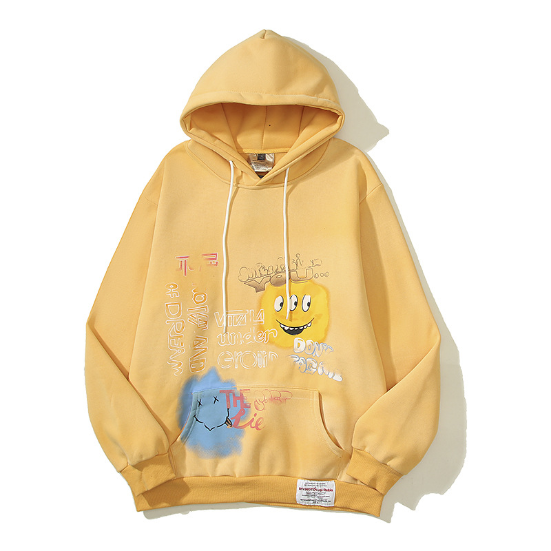 Saint Sweatshirt Unyielding Smiley Face Graffiti Print Hooded Sweatshirt Unisex Casual Loose Hoodie