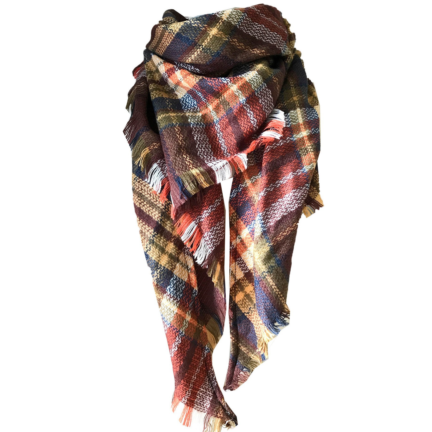 Scarf Women's Autumn and Winter Plaid Tassel Soft Warm Triangle Shawl Wrap Shoulder Soft Gift
