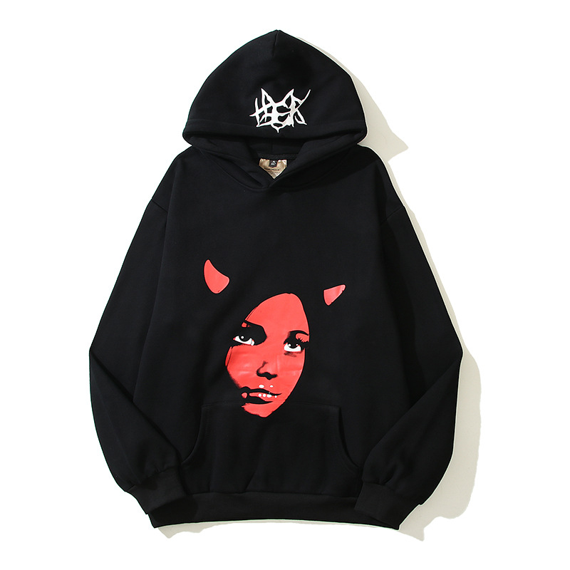 T-REX Sweatshirt Red Horn Girl Print Casual Loose Hooded Sweatshirt Plus Fleece Hoodie