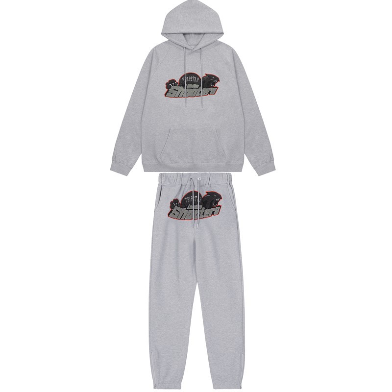 Trapstar Sweatshirt Trousers Suit Red and Black Tiger Head Towel Embroidery Couple Casual