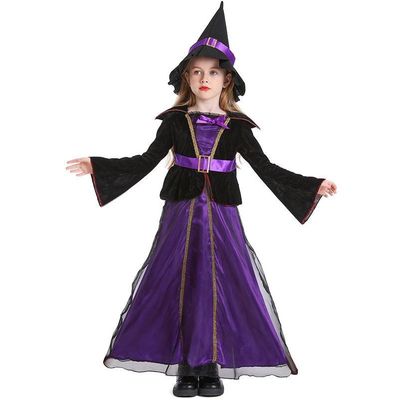 Witch Witch Dress Halloween Costume Purple Girl with Cape Stage Performance Costume