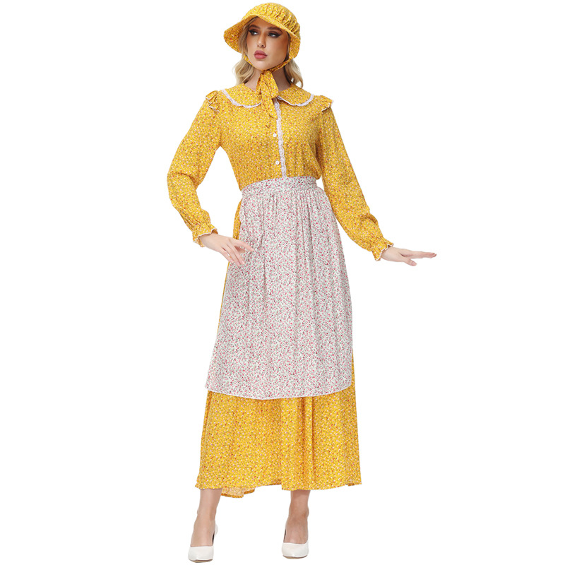 Yellow floral colonial girl prairie pioneer pioneer clothing pastoral style dress